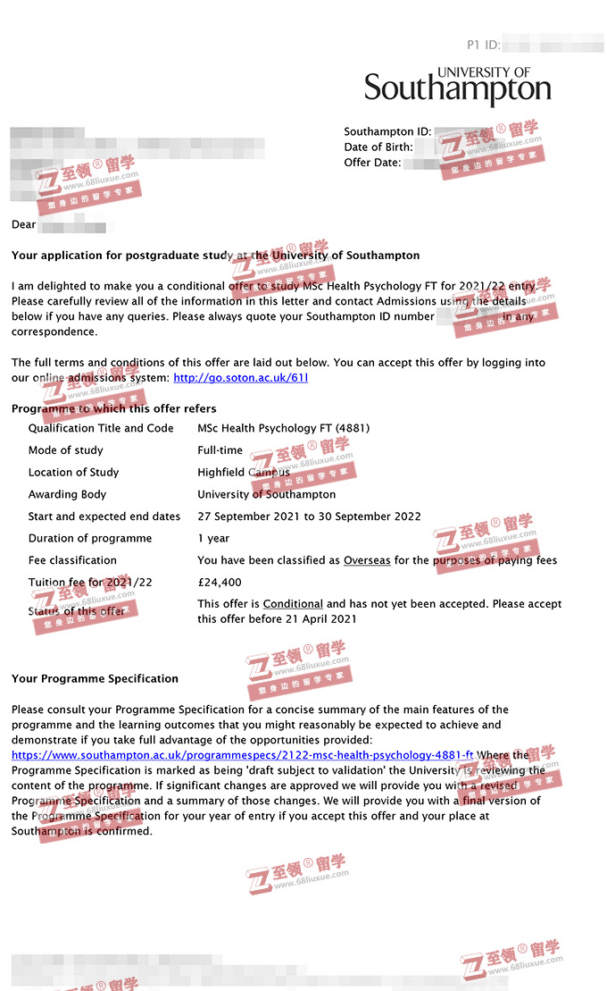 录取结果:University of Southampton,MSc Health Psychology南安普顿大学健康心理学硕士录取