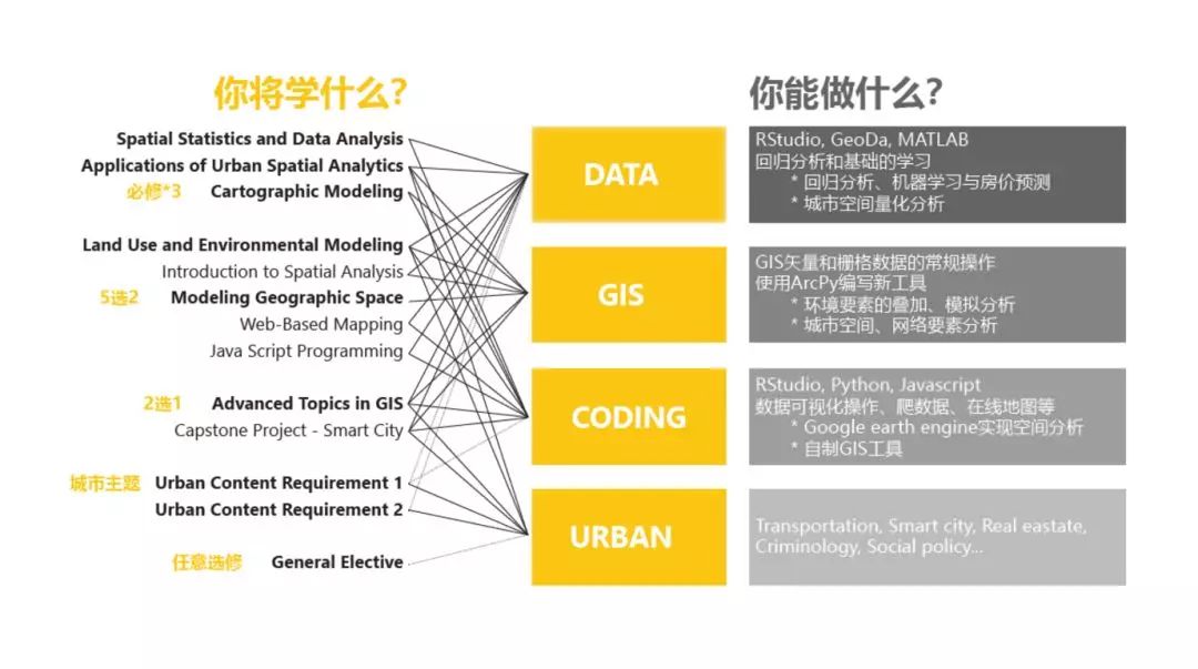 宾大的MUSA项目是在数据科学与公共政策的交叉领域进行研究,是个为期一年的硕士项目,该项目计划将GIS、空间分析、数据科学、统计学、R和Python编程语言、数据可视化和基于Web的地图课程与世界一流的城市内容课程相结合,教学生利用空间分析和数据科学解决当今最紧迫的公共政策和城市规划难题。在MUSA实践中,学生与客户合作开发数据科学工具,可以帮助利益相关者更好地分配其有限的资源。