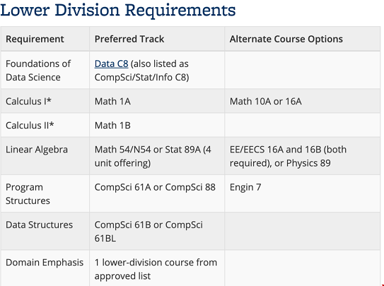 Computational & Inferential Depth 计算和推理深度:学生必须从高级课程列表中选择两门(7个学分以上)课程,这些课程提供了数据100和低年级课程的计算和推理深度(C&ID)
