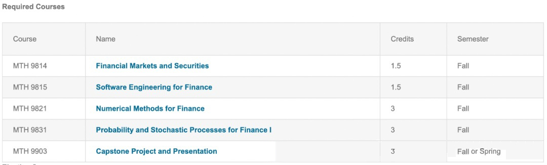 经过广泛的审查,其中包括来自行业从业者、校友和教师的反馈,巴鲁克 MFE 课程经过重新调整,以最适合当前的金融就业环境。新的 Baruch MFE