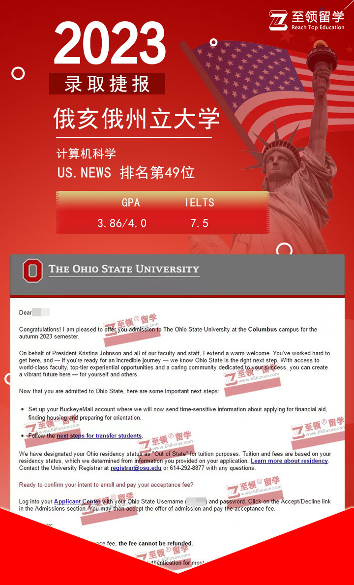 录取结果:Ohio State University,CS 俄亥俄州立大学CS本科转学录取