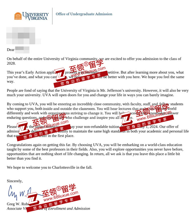 录取结果:弗吉尼亚大学本科录取