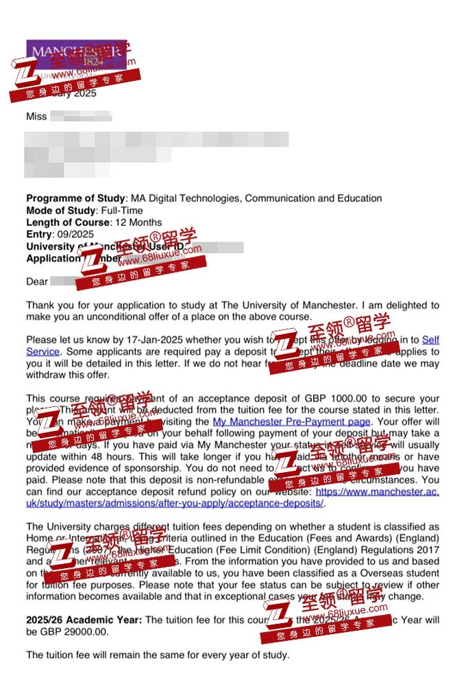 录取结果:曼彻斯特大学数字技术、传播和教育硕士录取