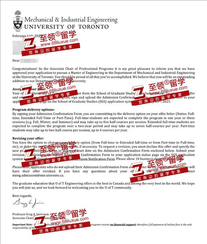 录取结果:多伦多大学机械与工业工程硕士录取