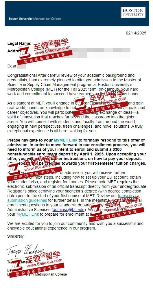 录取结果:波士顿大学供应链管理硕士录取