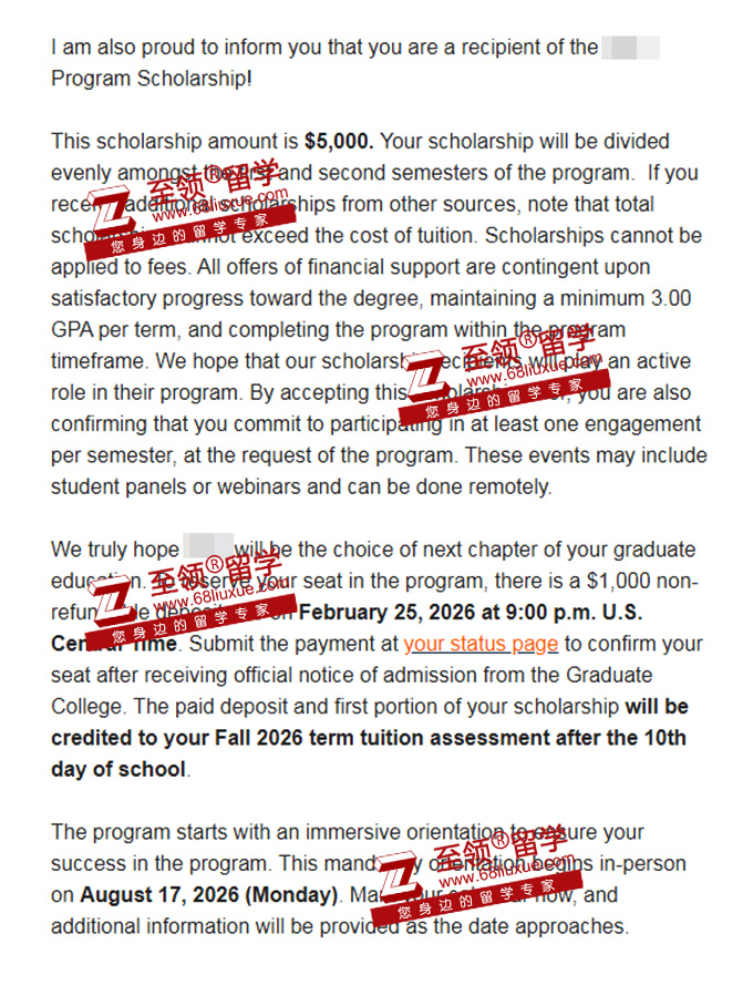 录取结果:伊利诺伊大学香槟分校管理学硕士录取+$5000奖学金