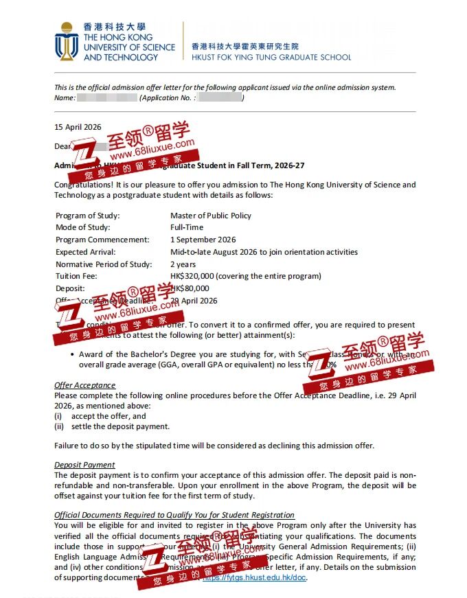 录取结果:香港科技大学MPP硕士录取
