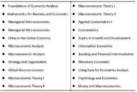 我们以香港科技大学经济学硕士开设的课程为例,众所周知,不同于香港大学经济学的实用性、应用性,香港科技大学的经济学以理论功底深厚、理论知识扎实且要求严格闻名,经济系的很多教授来自北美名校,在课程设置方面也可以看出,以2014-2015学年为例: