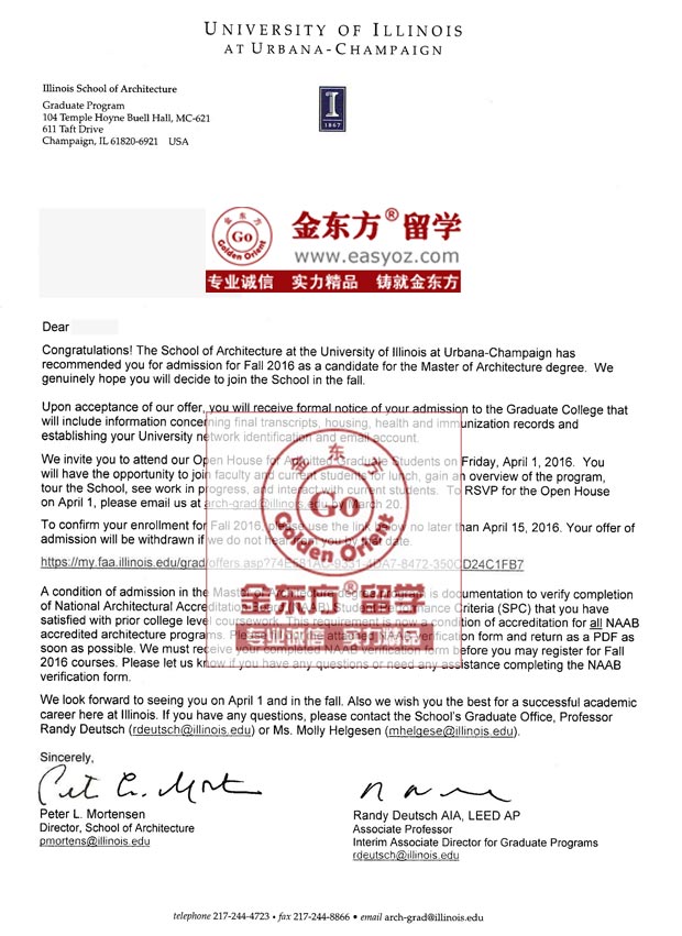 录取结果:美国伊利诺伊大学建筑学硕士