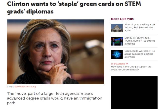 距离美国大选还有不到四个月的时间,希拉里与特朗普在诸多关键性问题上展开了更为激烈的辩论,移民问题就是其中之一,为了赢得更多支持开放移民政策选民的支持与信任,希拉里近日在其竞选官网(hillaryclinton.com)上表示,如若当选,将继续推进促成民主党提出的移民政策改革方案:H1B增加名额、STEM硕士和博士毕业生可直接申请绿卡。