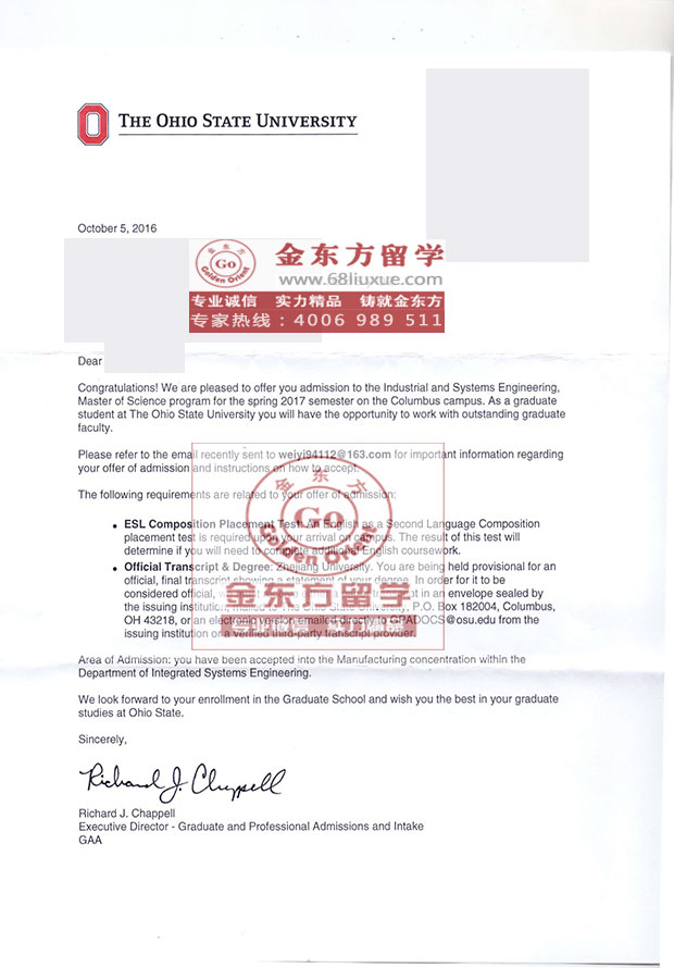录取结果:俄亥俄州立大学,工业与系统工程硕士(MS in Industrial and Systems Engineering)