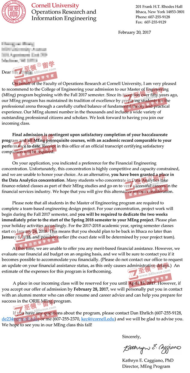 录取结果:Cornell University康奈尔大学,Financial Engineering金融工程