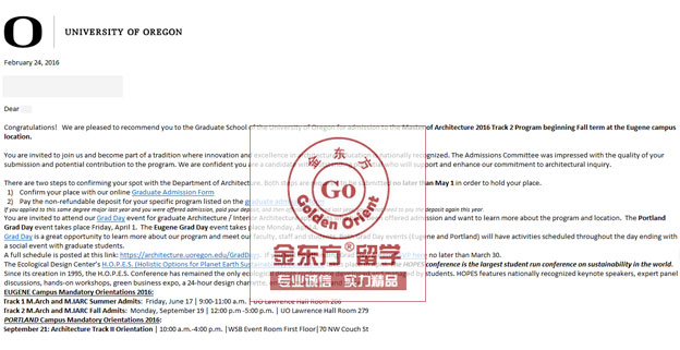 精心的专业选择,个性化的文书材料,及时的申请提交,成为了T同学能够成功拿到俄勒冈大学offer的关键,这一年的努力让我们看到付出就有回报,拿下专业排名第一的学校不是梦。