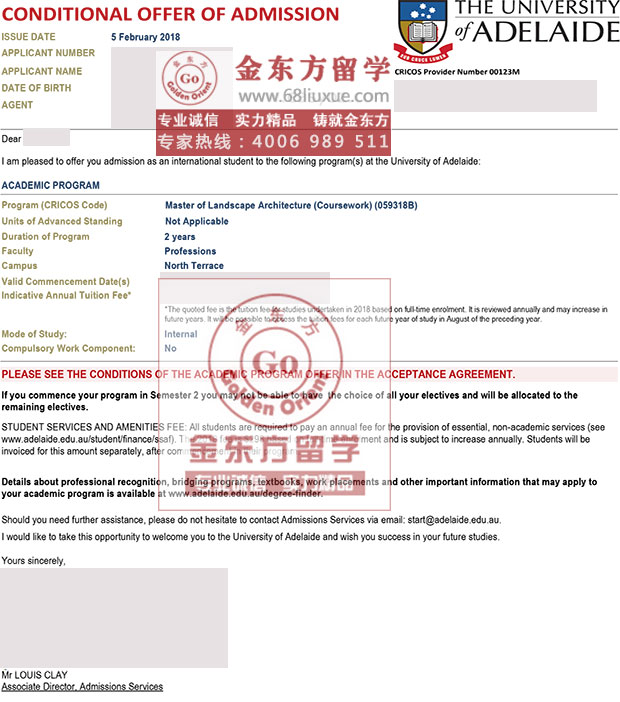 录取结果:University of Adelaide 阿德莱德大学,Master of Landscape Architecture景观建筑硕士