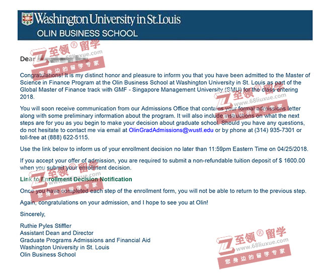 录取结果:WUSTL-Global Master of Finance - Singapore Management University (Dual Degree Program)