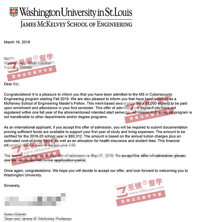 录取结果:WUSTL,MS in Cybersecurity Engineering圣路易斯华盛顿大学网络安全工程硕士,奖学金 $1000
