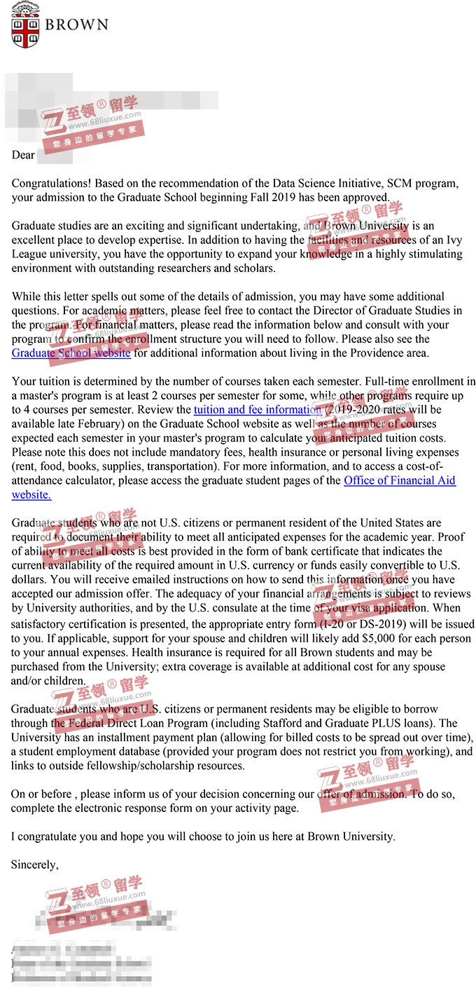 录取结果:Brown University ,MS in Data Science Initiative布朗大学数据科学硕士