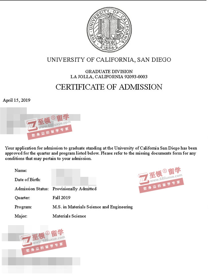 录取结果:University of California- San Diego, MS in Materials Science and Engineering 加州大学圣地亚哥分校材料科学与工程硕士
