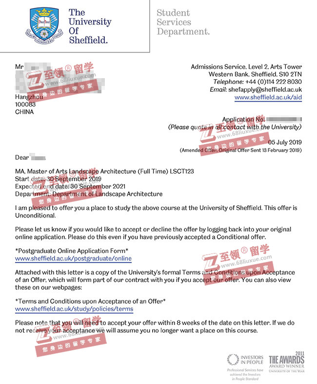 录取结果:Sheffield University谢菲尔德大学,MLA景观设计硕士