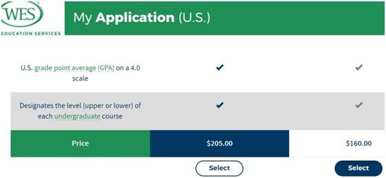 步骤9:认证类型有2中,一个是WES Basic($160),一个是WES ICAP($205);正常情况下选择WES