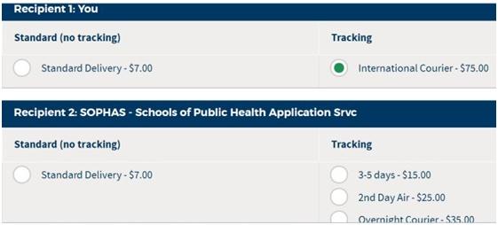 步骤10:邮寄方式分为平邮和快递;平邮比较便宜$7;快递的话,寄送给自己的那份通常建议选择国际快递$75,这样有快递号码,可以随时查询;寄送报告给要申请的大学也建议选择快递,不够这里快递分为3种:3-5