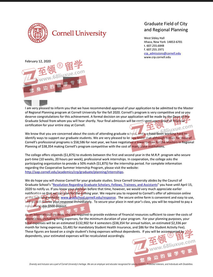 录取结果:Cornell University,Master of Regional Planning康奈尔大学城市规划硕士录取