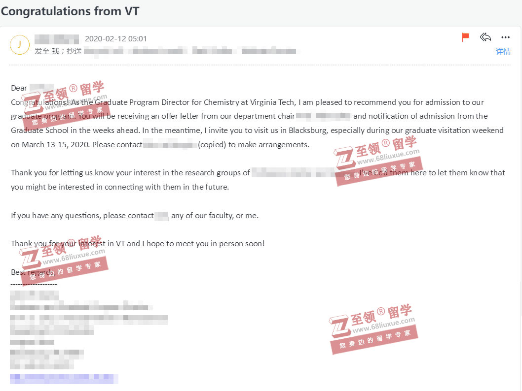 录取结果:Virginia Tech,PhD in Chemistry弗吉尼亚理工大学化学PHD全奖