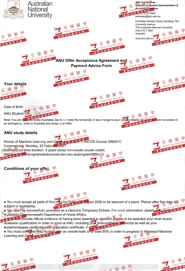 录取结果:Australian National University,Master of Machine Learning and Computer Vision澳洲国立大学机器学习和计算机视觉硕士录取