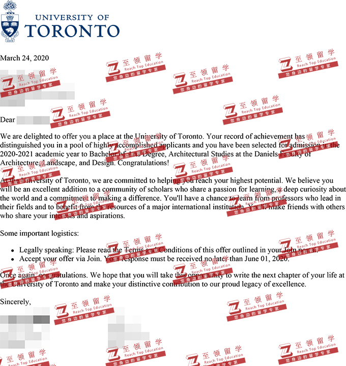 录取结果:University of Toronto,Bachelor of Arts Degree, Architectural Studies多伦多大学建筑本科录取