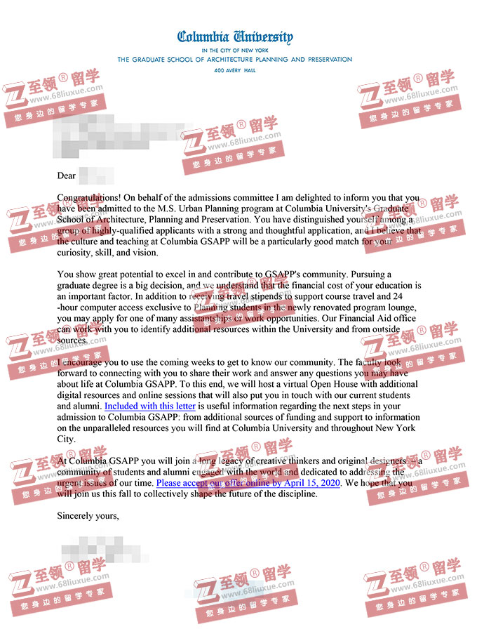 录取结果:Columbia University,M.S. Urban Planning 哥伦比亚大学城市规划硕士录取