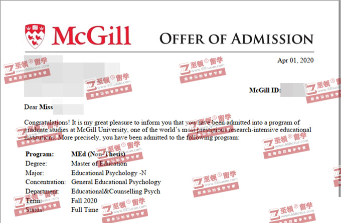 录取结果:McGill University,M.Ed in Educational Psychology麦吉尔大学教育学硕士录取
