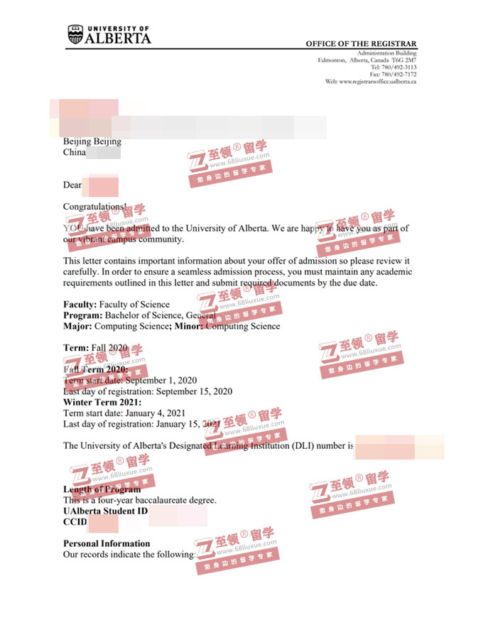 录取结果:University of Alberta,BS in Computing Science阿尔伯塔大学计算机本科录取