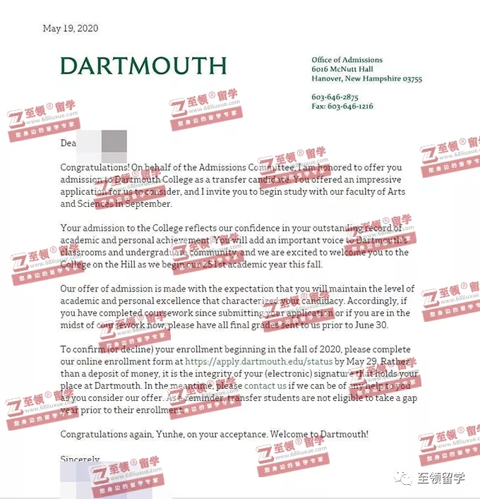 录取结果:Dartmouth College faculty of Arts and Sciences达特茅斯文理学院录取