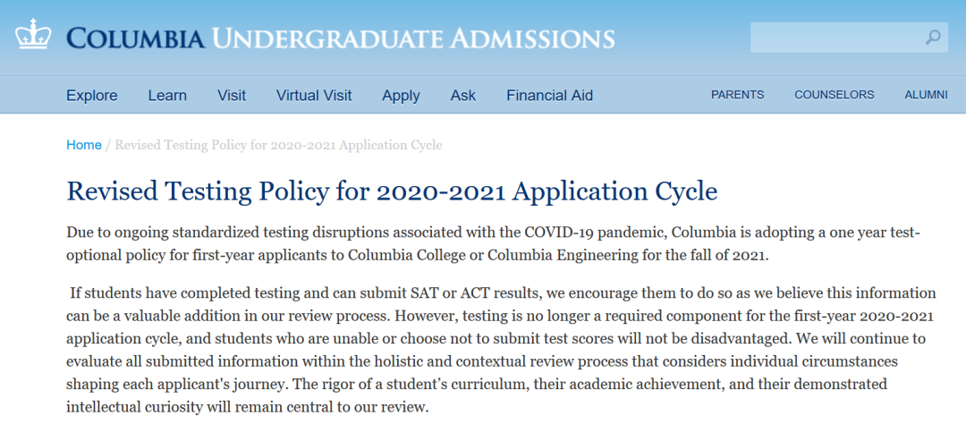 2、关于标化成绩。对于如何调整标化成绩要求,耶鲁大学本科招生办表现的十分谨慎,并没有直接给出是取消还是继续保持,而是说6月中旬再宣布新政。但耶鲁大学十分明确的说明对于2025届申请者,将不需要SAT科目成绩,也不用提交。