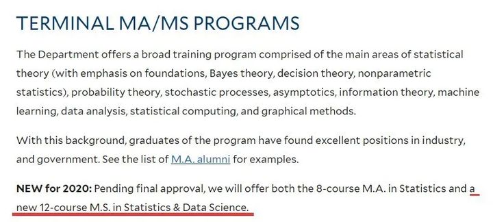 耶鲁大学(Yale University)于2020年新开了一个硕士项目—— 统计和数据科学硕士(M.S. in Statistics and Data Science)!