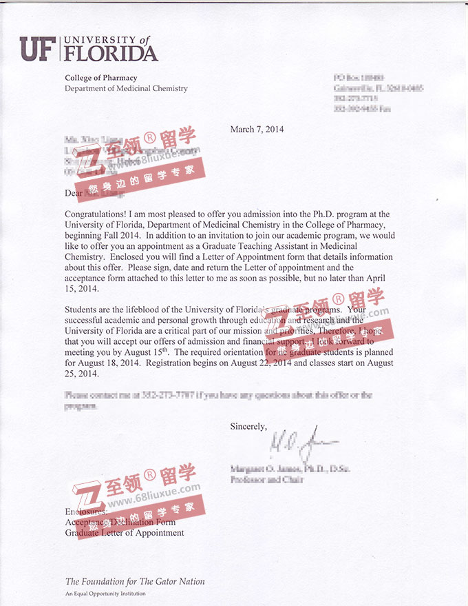 L同学是去年7月份找到我们的,是某985/211大学化学专业的打四学生,虽然背景及硬性条件都很优秀,但DIY申请全军覆没,我们综合分析了L同学的case,认为是申请方法上出了问题,于是把重点放在了文书的深层次挖掘上,果然功夫不负有心人,被UF录取,还有30000+奖学金和TA。