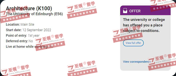 录取结果:The University of Edinburgh,BA Architecture (ARB/RIBA Part 1)爱丁堡大学建筑学本科录取