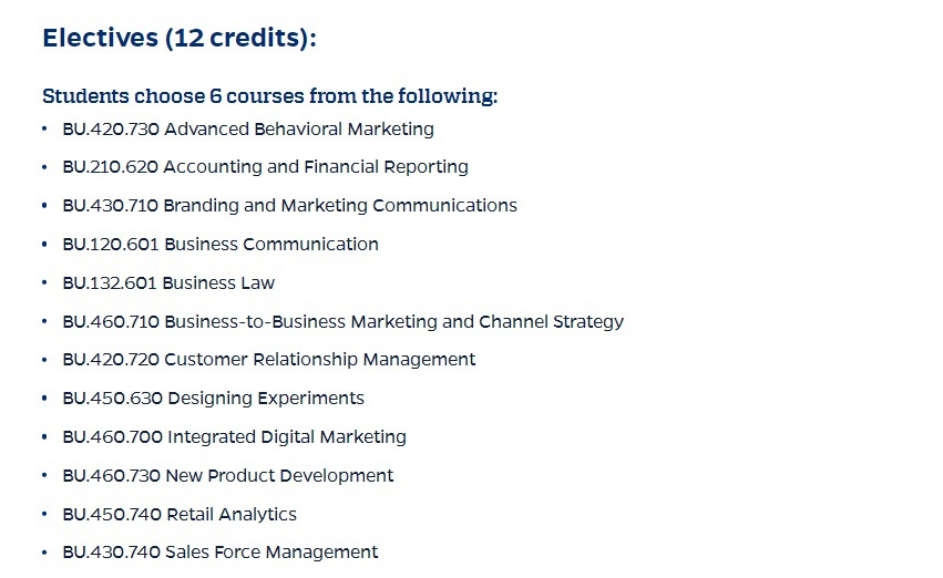 JHU Carey商学院下开设的Marketing 硕士项目也是众多学生申请的目标项目之一。项目总时长1年,marketing analytics方向是STEM designated. JHU营销硕士结合了对消费者行为,大数据,分析,新技术和说服心理学的深刻见解,揭示当代营销内在原理。此外,该硕士课程还会涉及很多当今市场面临的争议性话题的讨论,如超短产品生命周期,市场进入与退出战略,战略风险管理,以及产品营销等等。