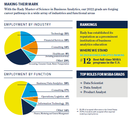 加州大学圣地亚哥分校商业分析硕士2022届毕业生就业数据如下: