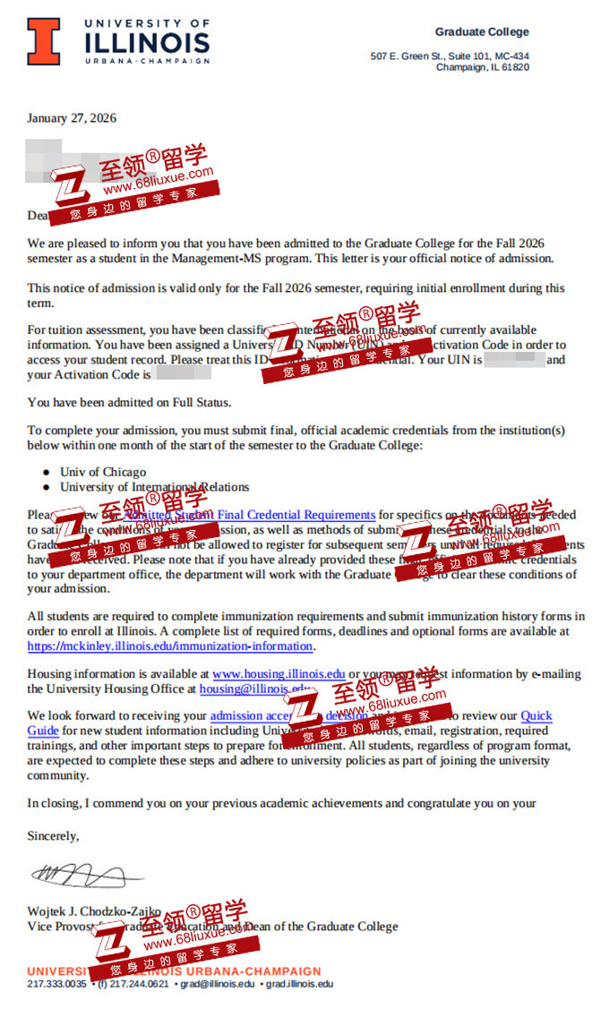 伊利诺伊大学香槟分校管理学硕士录取+$5000奖学金