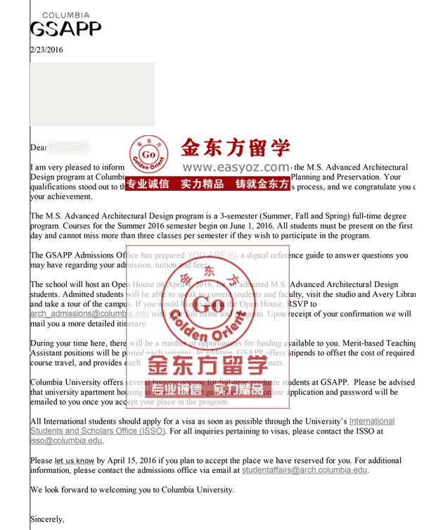 2016年金东方4位客户同被哥伦比亚大学建筑学院录取