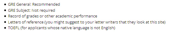 申请条件:GPA 3.3,TOEFL 103,GRE 316
