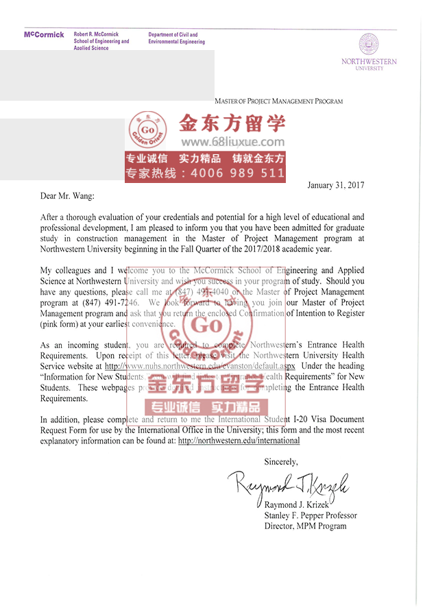 录取结果:Northwestern University西北大学, Master of Project Management(MPM)项目管理硕士