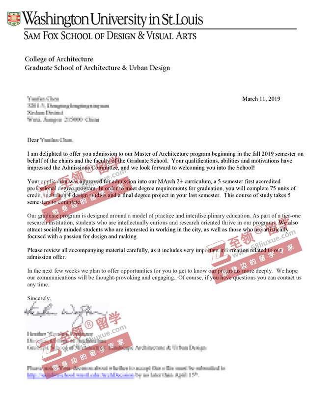 录取结果:WUSTL圣路易斯华盛顿大学,Master of Architecture 建筑学硕士