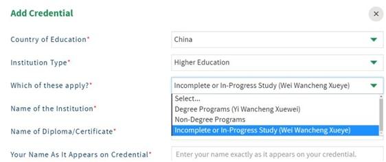 中国学生如需完成WES认证则必须首先完成中国教育部“学位网(CDGDC)”或“学信网认证(CHSI)”认证;